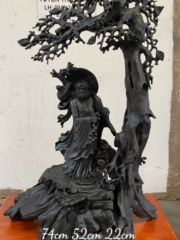 Đạt Ma du Xuân. Gỗ Mun Sừng qúy hiếm. Kt : 74cm 52cm 22cm