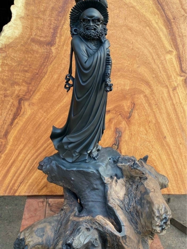 Đạt Ma Gỗ mun sừng qúy hiếm . Kt 69cm 46cm 36cm