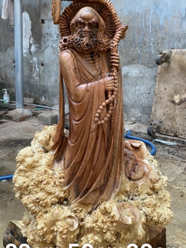 Đạt Ma gỗ nu hương giáng . Kt 82cm 50cm 30cm