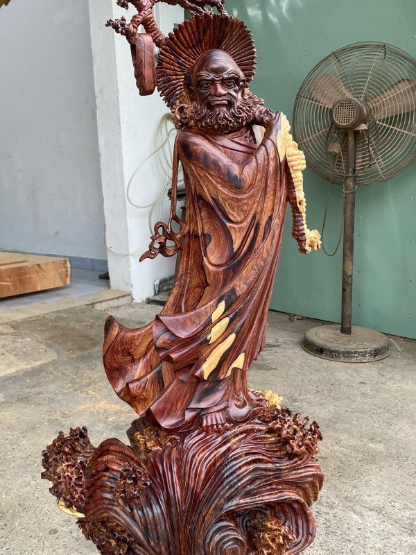 Đạt Ma Quá Hải, gỗ Cẩm Lai . Kt 80,5cm 42cm 28cm
