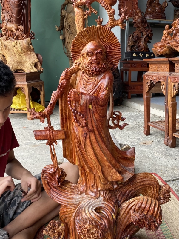 Đạt Ma Quá Hải gỗ Cẩm vân đẹp , kt 100cm 50cm 35cm