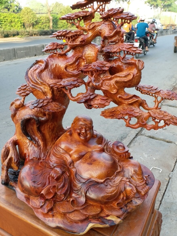Di lặc ngồi gốc tùng - Gỗ hương - 72cm x 62cm x 42cm