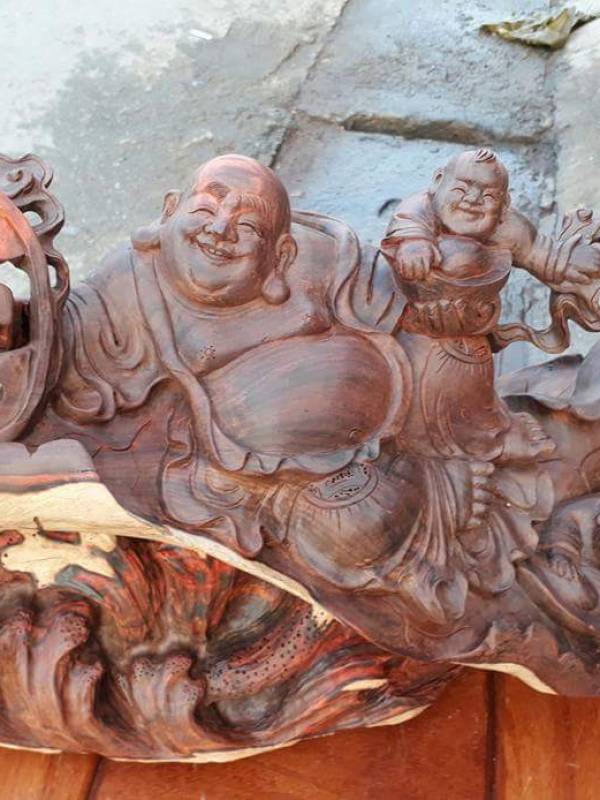 Di Lạc Nhất Phúc - Gỗ Trắc Việt - 52cm x 30cm x 20cm