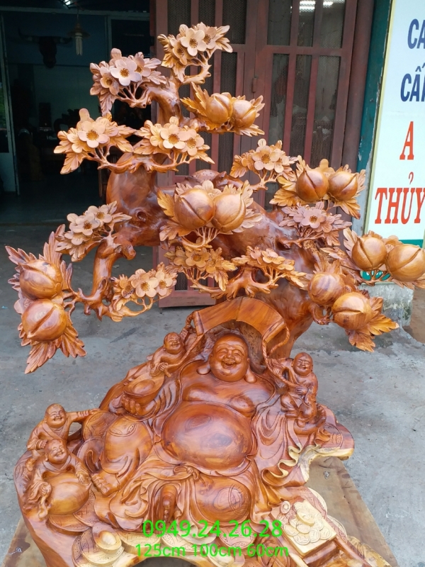 DI LẠC TAM PHÚC ngồi gốc đào cổ thụ . kt 125cm 100cm 60cm