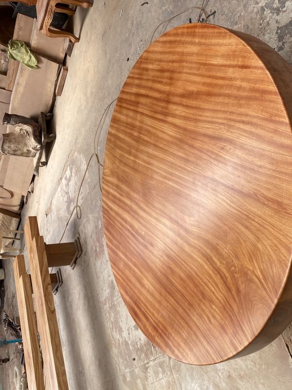 Mặt bàn tròn gỗ gõ đỏ . Kt : 142cm dầy 14cm